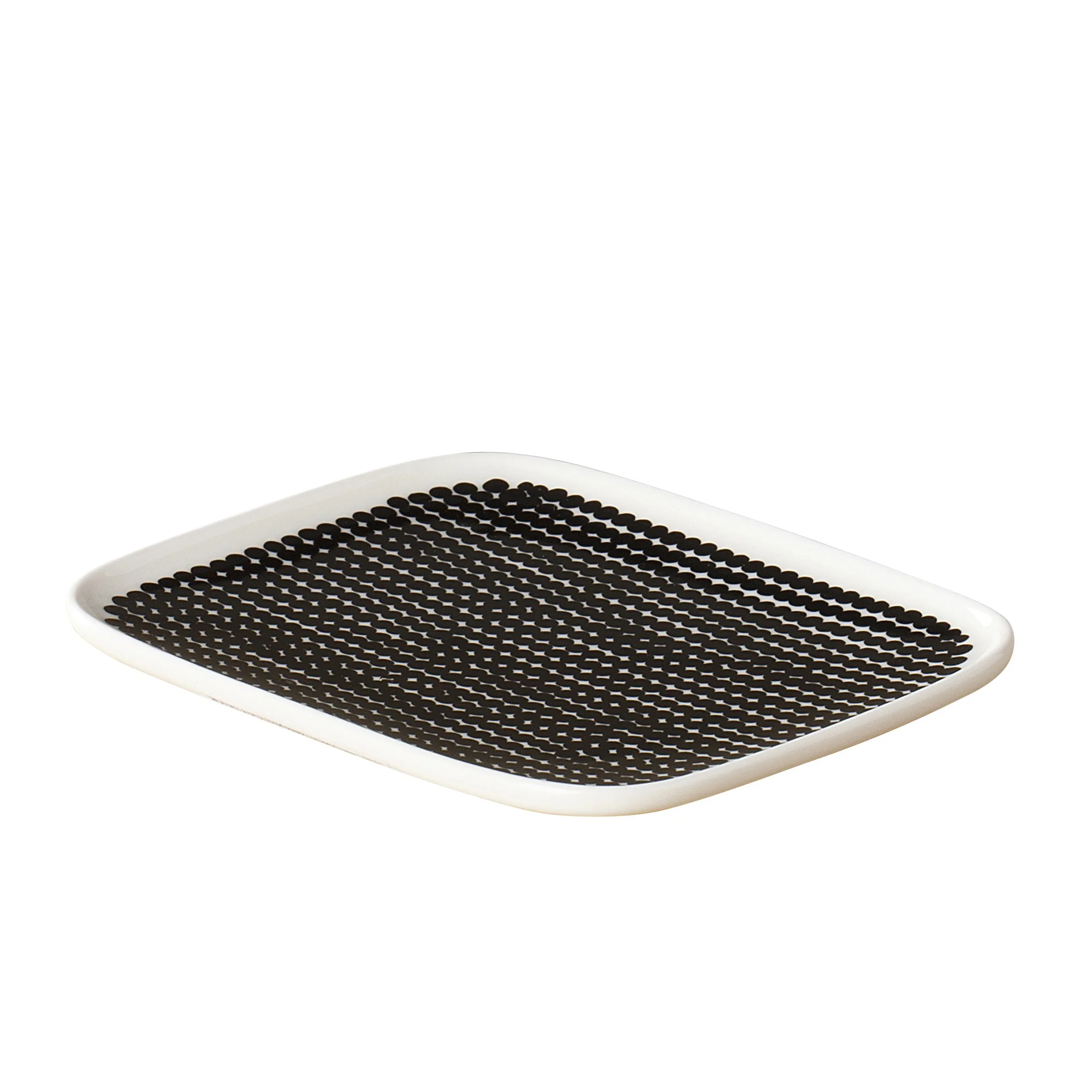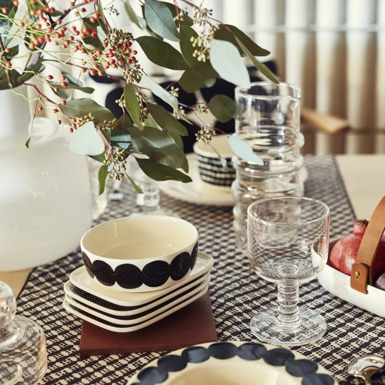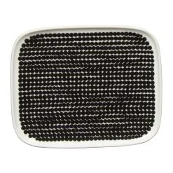 Yksinkertaisen, mutta leikkimielisen kattauksen saat aikaan Marimekon Räsymatto lautasella. Itse lautanen on Sami Ruotsalaisen muotoilema ja kuosi on Maija Louekarin käsialaa. Lautanen on valmistettu korkealaatuisesta kivitavarasta ja klassinen musta-valkoinen pilkkukuvio on helppo yhdistää muuhun kattaukseen.
